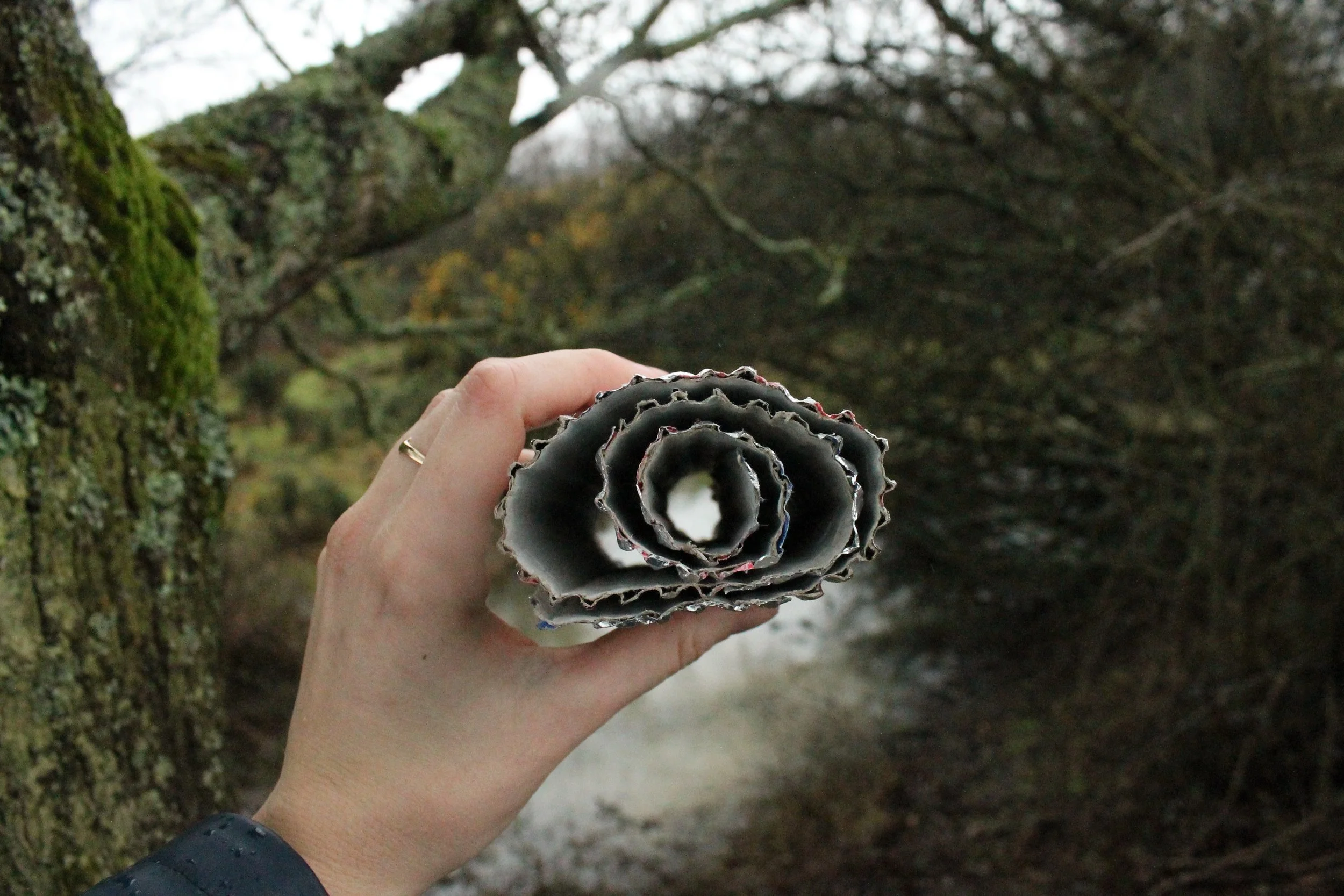 a ‘telescope’ made out of rolled up cardboard covered with